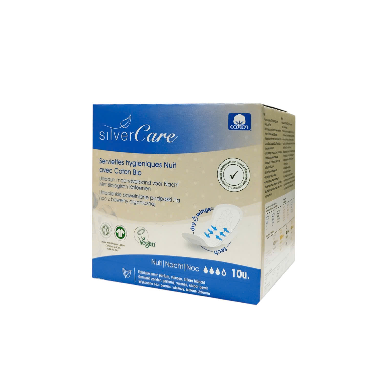 Băng Vệ Sinh Hữu Cơ Siêu Mỏng Có Cánh Ban Đêm Silvercare – Hộp 10 Miếng
