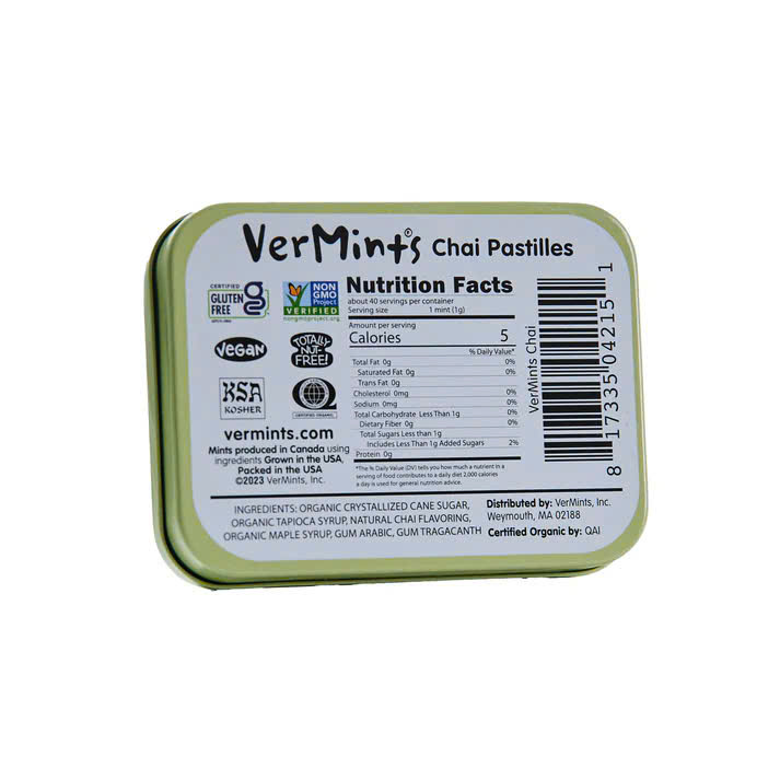 Với thành phần hữu cơ, không chứa gluten, không biến đổi gen (Non-GMO) và không hóa chất nhân tạo, VerMints Chai là lựa chọn an toàn và tốt cho sức khỏe.