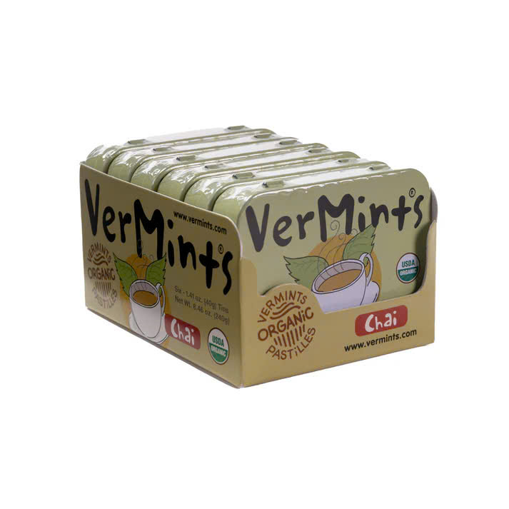 Kẹo ngậm thơm miệng hữu cơ VerMints vị chai mang đến trải nghiệm thư giãn và ấm áp như một tách trà chai nóng. Hương vị độc đáo của các loại gia vị tự nhiên tạo nên sự cân bằng giữa ngọt ngào, cay nhẹ và hương thơm dễ chịu. Sản phẩm giúp hơi thở thơm mát tức thì, đồng thời mang lại cảm giác thư giãn nhẹ nhàng.